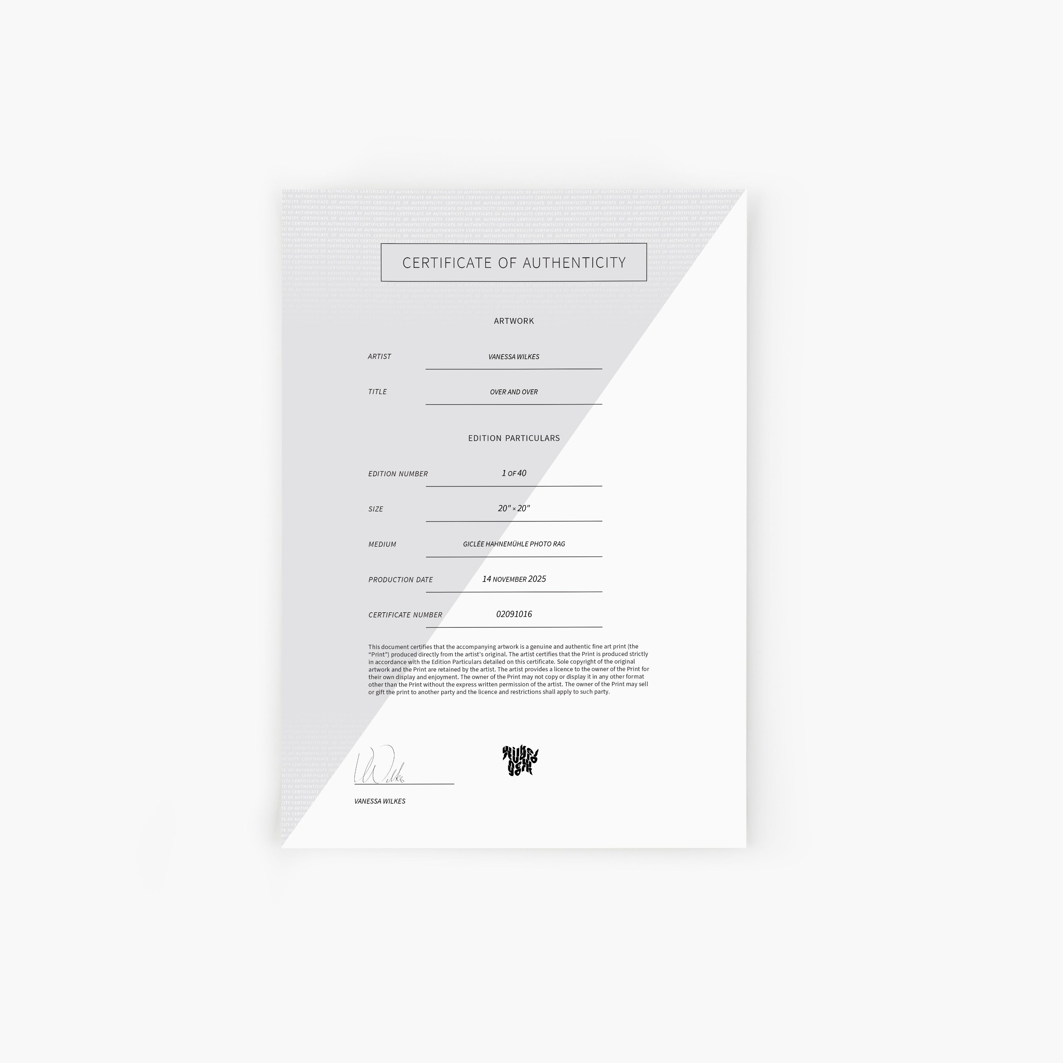 • Presented on acid-free, archival cotton Photorag Giclée paper from Hahnemühle